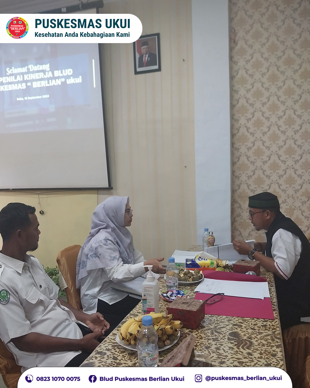 Ukui, 18 September 2024. Tim Penilai BLUD Kabupaten Pelalawan melaksanakan penilaian terhadap kinerja BLUD Puskesmas Berlian Ukui. Acara ini dihadiri oleh Tim Penilai yang terdiri dari beberapa aspek keuangan, SDM, pengelolaan aset, pelayanan, dan perencanaan.